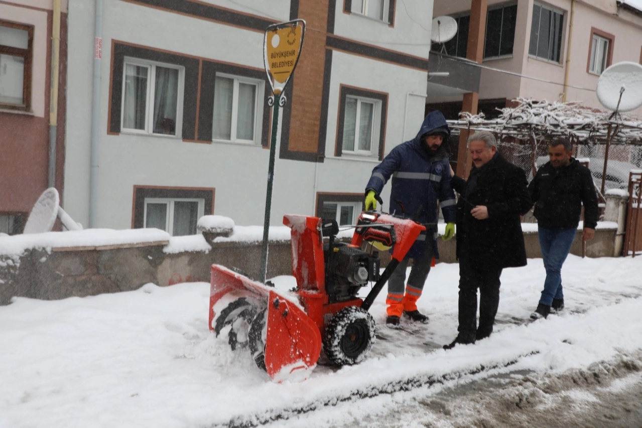 KAYSERİ (İGFA) - Eskişehir Bağları Osmanlı, Danişmentgazi, Selçuklu Mahallelerinde gerçekleştirilen karla mücadele çalışmalarına katılan Kayseri Melikgazi Belediye Başkanı Doç. Dr. Mustafa Palancıoğlu, vatandaşlara dikkatli olunması gerektiği konusunda uyarıda bulunurken, Melikgazi Belediyesi ekiplerinin 7/24 çalışmalarına devam ettiğini belirtti.