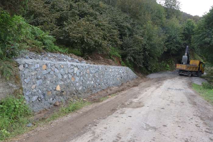 Ordu Büyükşehir Belediyesi ekipleri, taş ve perde duvarlarla oluşabilecek bir olumsuzluk karşısında ulaşım hizmetini aksatmıyor, yolun hasar alarak ömrünün kısalmasının önüne geçiyor. Yine oluşabilecek bu gibi durumlara karşı vatandaşların can güvenliğini de sağlamış oluyor.